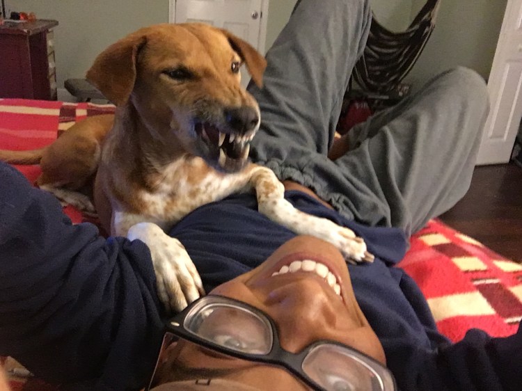 She is awake, yes…GET UP, it is time to walk…STOP smiling, get up and walk with me or I will bite you I do not care…I would choke the shit out of you and let myself out if I had thumbs I hate you, I love you.