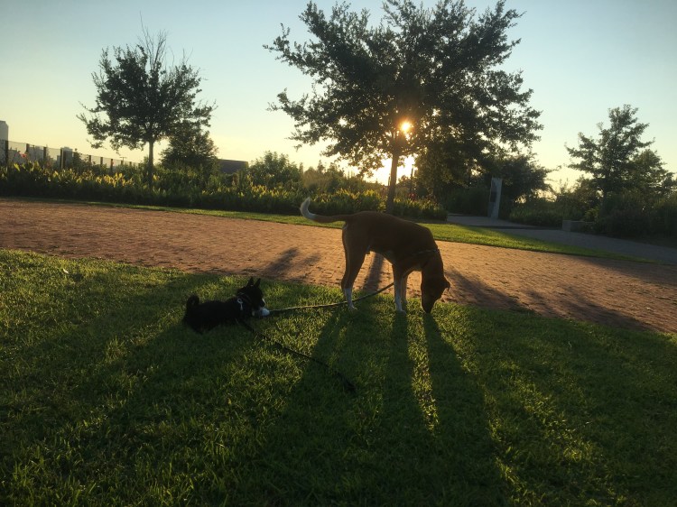 This morning, we stood between the darkness and the night. Above us, the lightening made a lantern with the clouds. Across the sky, the bright, full moon dunked yellow. As a friend crossed the circle to come and say, “Hello. Did you know, a yellow moon means go with the flow?” I said, “No, but you know, it’s something that I want to grow.” So I leapt from the shore and played in the river. And every… thing was… grand!